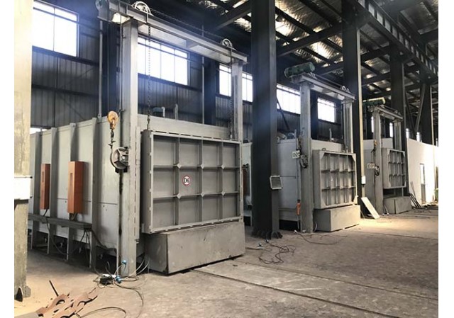 設備特點 全纖維爐體(回火爐帶爐內熱風循環系統);電阻帶加熱;電動提升爐門;臺車減速機電動自行走;全爐自動密封; PID自動控溫或計算機集中控制系統。