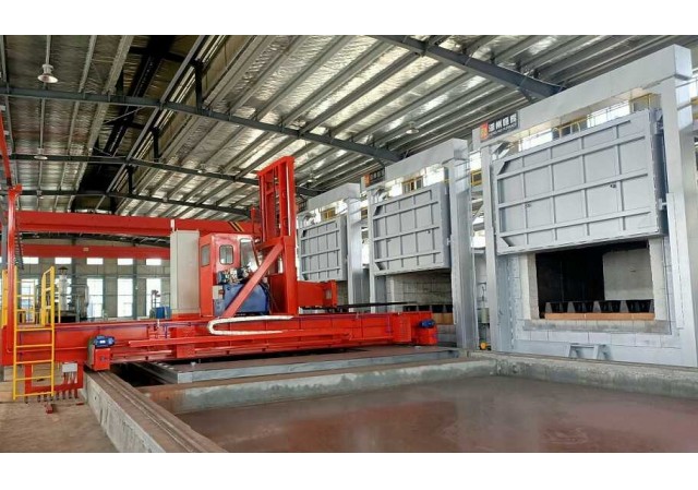 生產(chǎn)線配有一臺(tái)快速下水(油)淬火操作車,該操作車可上下、左右、前后六個(gè)方向移動(dòng)。工件熱處理完成后,操作車迅速進(jìn)入爐內(nèi)將工件從爐膛內(nèi)叉出,并快速落入水池或淬火液池內(nèi),整個(gè)轉(zhuǎn)移過程可控制在30秒內(nèi)完成。
